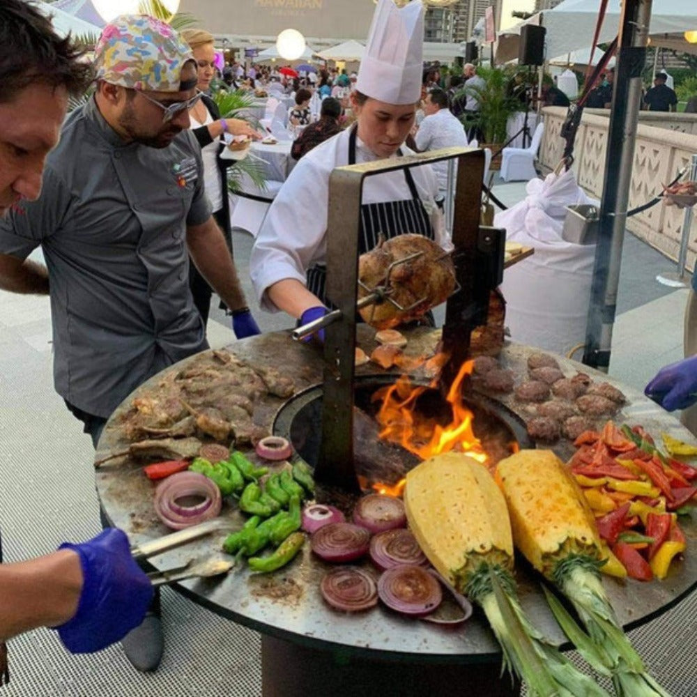 The Arteflame Classic 40" grill is a one-of-a-kind grilling experience. The cooktop is made of 1/2" carbon steel and the spun bowl is a high grade of US CORTEN steel or "weathering" steel.