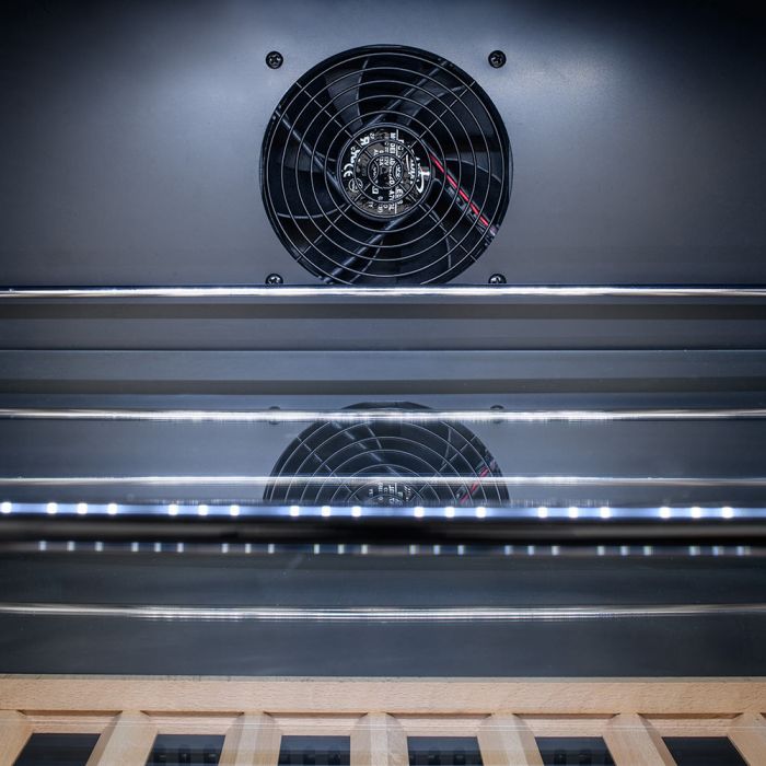 Beech and glass shelving are available to easily personalize the look and feel of the cooler, while the added bamboo racks allow you to transform it into a full-blown wine fridge! In terms of capacity, this cooler is hard to beat: it can hold a combination of 84 cans and 22 wine bottles, or 42 cans and 62 wine bottles. Whatever configuration you choose, the unit’s glass front lets you monitor your contents without opening the door and releasing that precious chill.